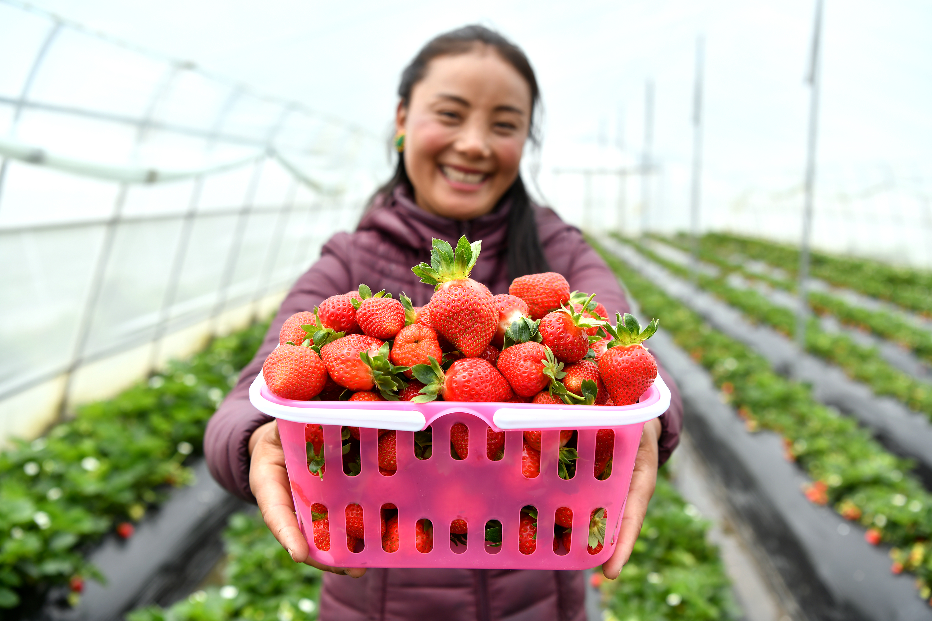 "You have to work almost all day, except at noon when the sun is out, and the temperature is too high in the greenhouse," she said. "But compared with highland barley, I earn much more from selling strawberries."