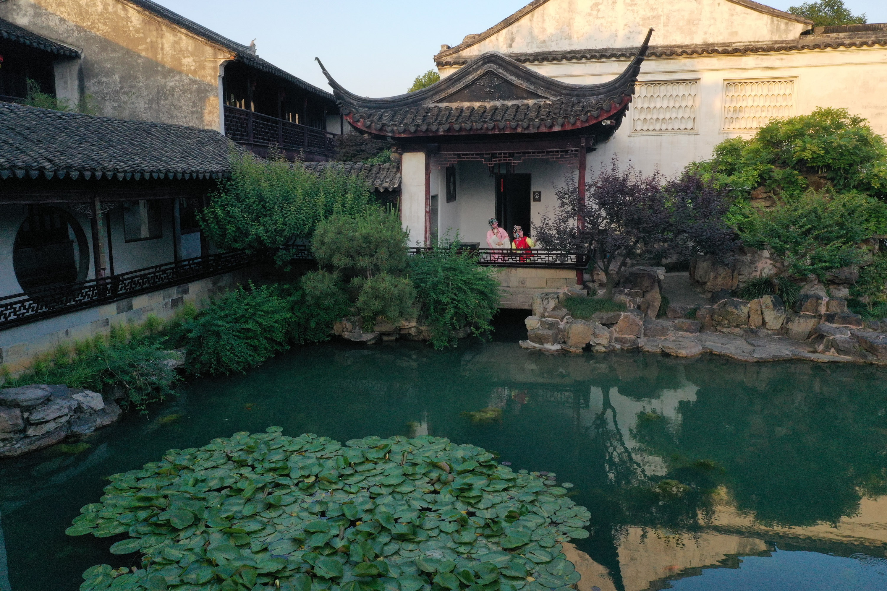Aerial photo taken on May 22, 2019 shows performers practicing Kunqu Opera at the Master-of-Nets Garden in Suzhou, east China's Jiangsu Province. (Xinhua/Ji Chunpeng)