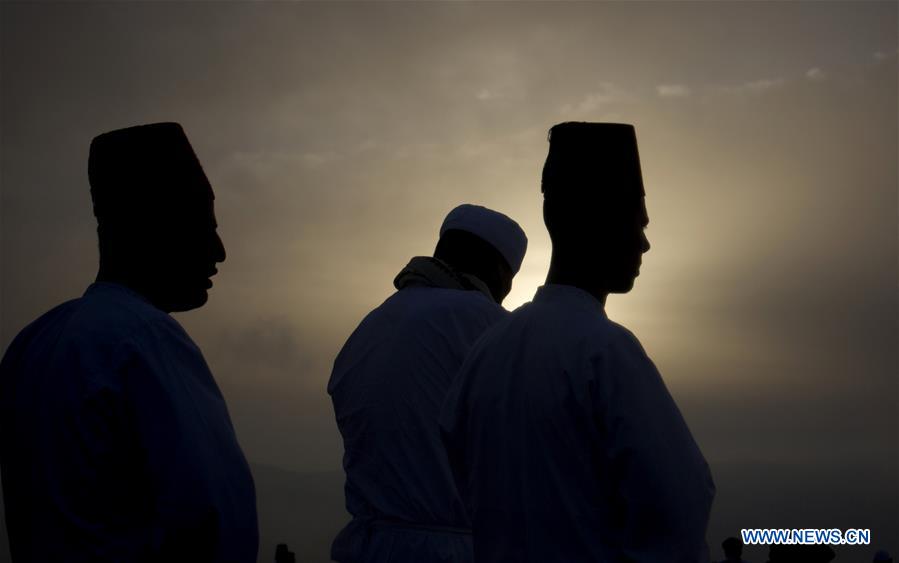 Samaritans participate in a traditional ceremony celebrating the Shavuot festival atop Mount Gerizim near the West Bank city of Nablus, on June 9, 2019. (Xinhua/Nidal Eshtayeh)