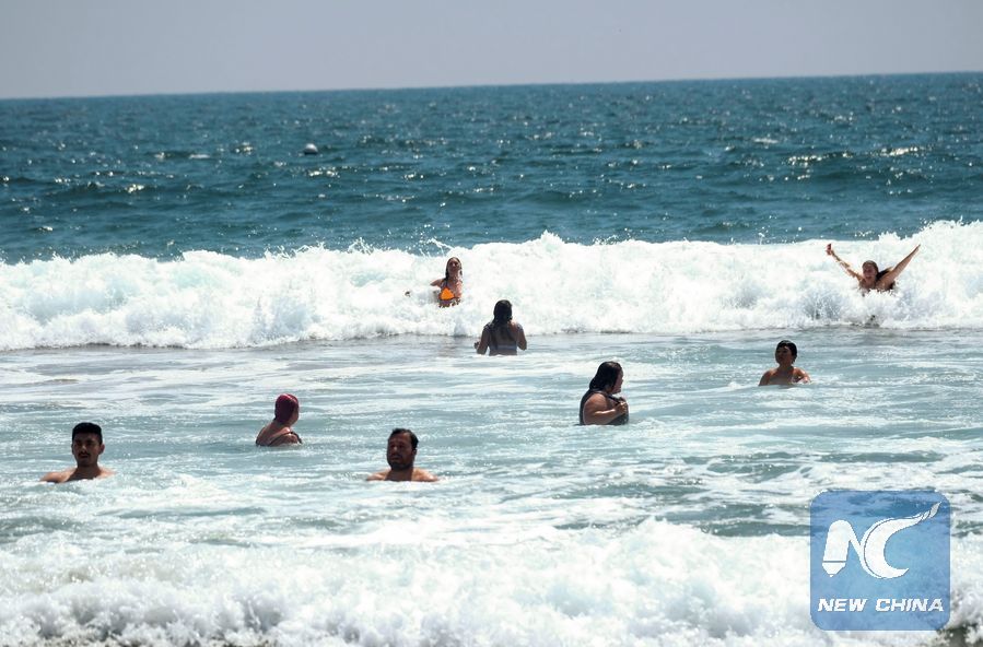 File Photo: People play in the water at Venice Beach in Los Angeles, the United States on June 20, 2018. (Xinhua/Zhao Hanrong)