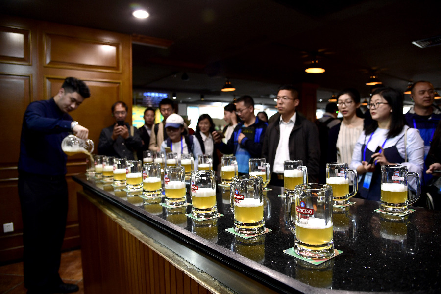 Visitors wait to taste beer at Tsingtao Brewery Co., Ltd. in Qingdao, a coastal city in east China's Shandong Province. (Xinhua/Guo Xulei)
