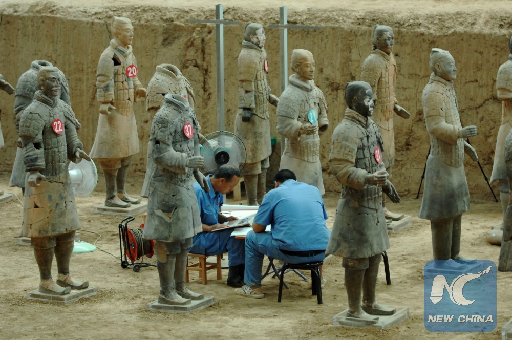 Archaeologists work at the No. 1 pit. (Xinhua/Li Yibo)