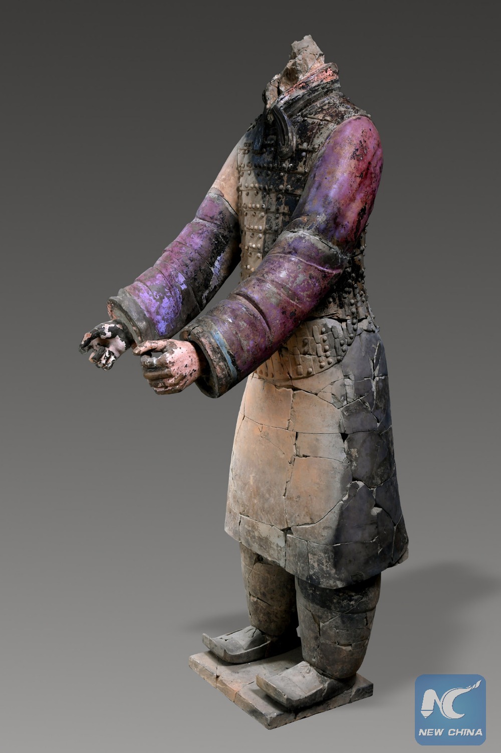 These new techniques can keep the paint stable for over ten years. And in the museum you can see for yourselves the scarlet hair bands, pink faces, scarlet lips, purple robes and pants of some of the well-preserved warriors.