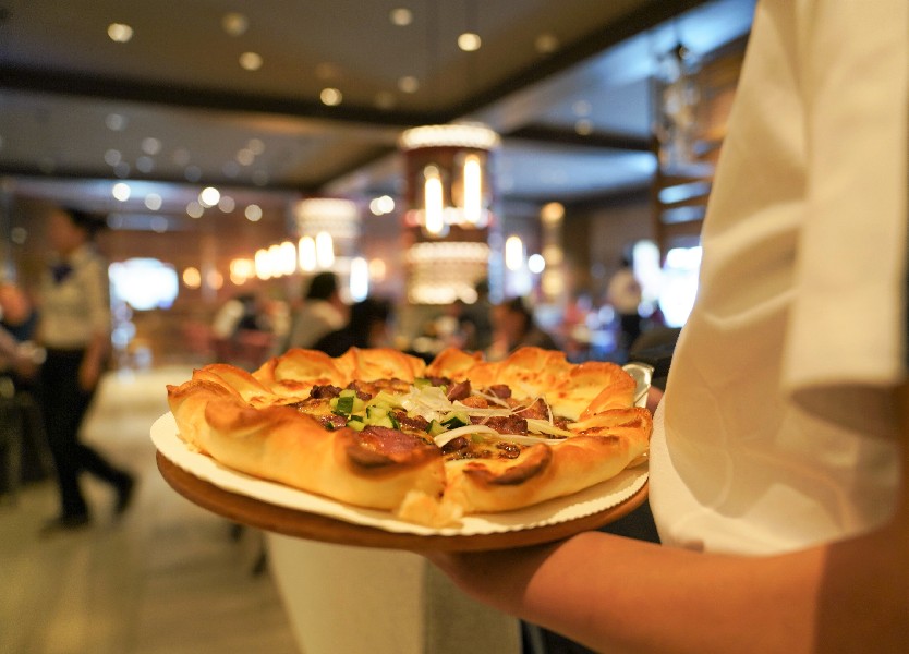 Photo taken on June 20, 2019 shows a waiter delivering pizza at the first Pizza Hut branch in southwest China's Tibet Autonomous Region. The branch opened on June 19, 2019 on a downtown Lhasa street popular among Buddhists and tourists. (Xinhua/Jigme Dorje)