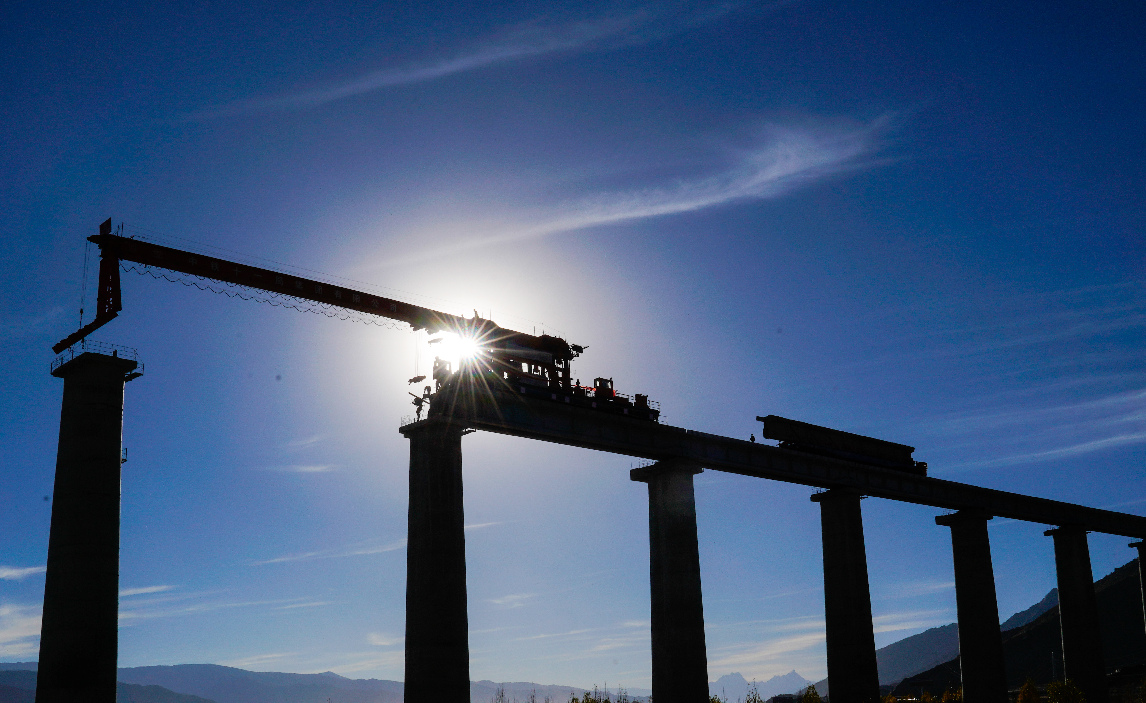Photo taken on Oct. 16, 2018 shows construction site of Lhasa-Nyingchi railway in southwest China's Tibet Autonomous Region. (Xinhua/Purbu Zhaxi)