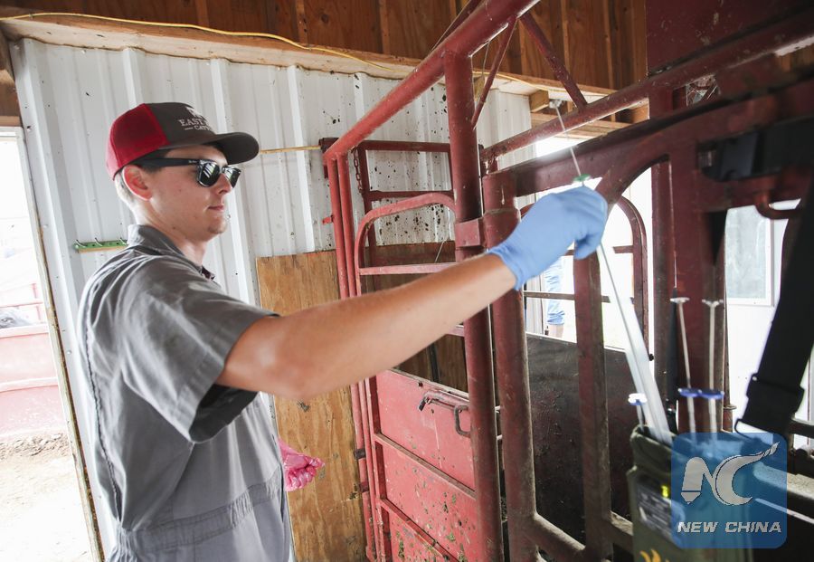 ATLANTIC, the United States, June 29 (Xinhua) -- Bill Pellett, a fifth-generation farmer in Atlantic, a small city in the U.S. Midwestern state of Iowa, has found a cost-effective way to raise better calves each year without purchasing new bulls -- artificial insemination (AI).