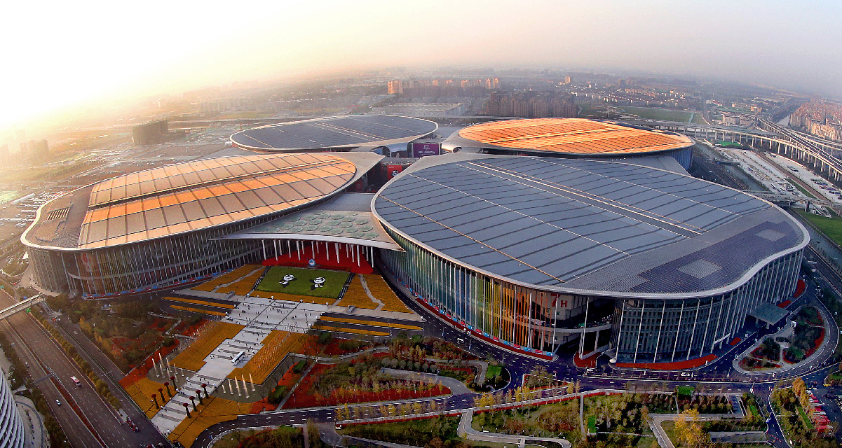 Aerial photo taken on Nov. 9, 2018 shows the National Exhibition and Convention Center in Shanghai, east China. The first China International Import Expo is held here on Nov. 5-10, 2018. (Xinhua/Fan Jun)