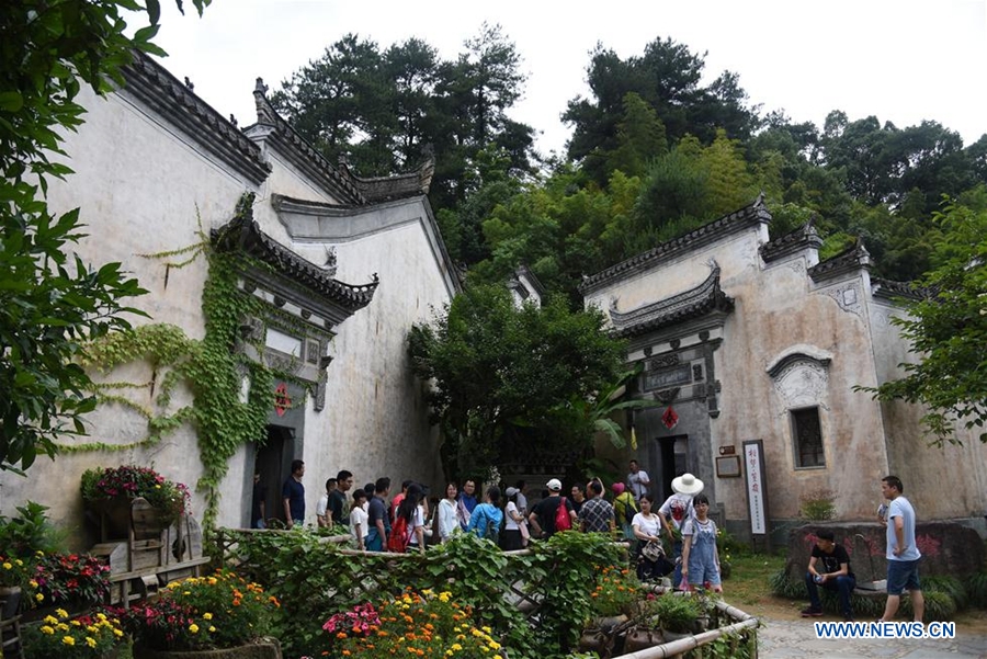 Tourists visit the Huangling scenic spot in Wuyuan County, east China's Jiangxi Province, June 29, 2019. The B&B hotel industry has taken a leap in Wuyuan in recent years. Various measures have been taken to promote local all-for-one tourism, including renovating and decorating hotels and holding cultural activities, so as to improve tourists' experience. As of the end of 2018, Wuyuan County has more than 100 boutique B&B hotels and over 600 public B&B hotels. Wuyuan's B&B hotel business, with a turnover of 1.3 billion yuan in 2018, is gaining momentum in the development of local tourism and rural revitalization. (Xinhua/Zhang Ruiqi)