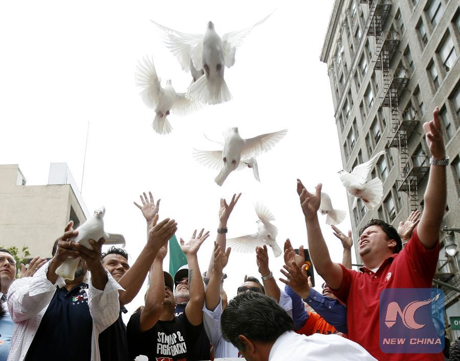 The file photo shows that doves are released during a May Day rally protest march for immigrant rights, in downtown Los Angeles May 1, 2009. Groups of mostly Hispanic protesters waved flags and chanted in pro-immigration May Day rallies across the United States on Friday. (REUTERS Photo)