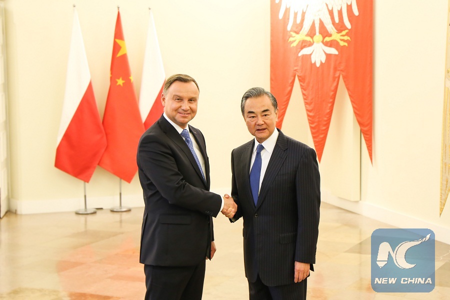 WARSAW, July 10 (Xinhua) -- Visiting Chinese State Councilor and Foreign Minister Wang Yi held talks with Polish President Andrzej Duda here on Tuesday, pledging to promote pragmatic cooperation.
