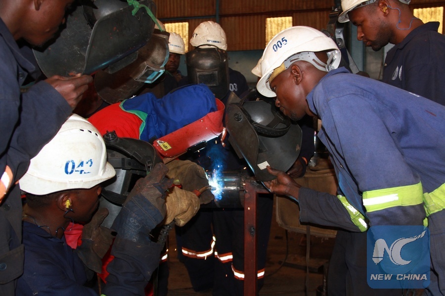 File photo shows local students attend a welding training course in Kampala, capital of Uganda, March 21, 2018. The trainees should be able to pass the welding examination after about 50 days of training. (Xinhua/Zhang Gaiping)
