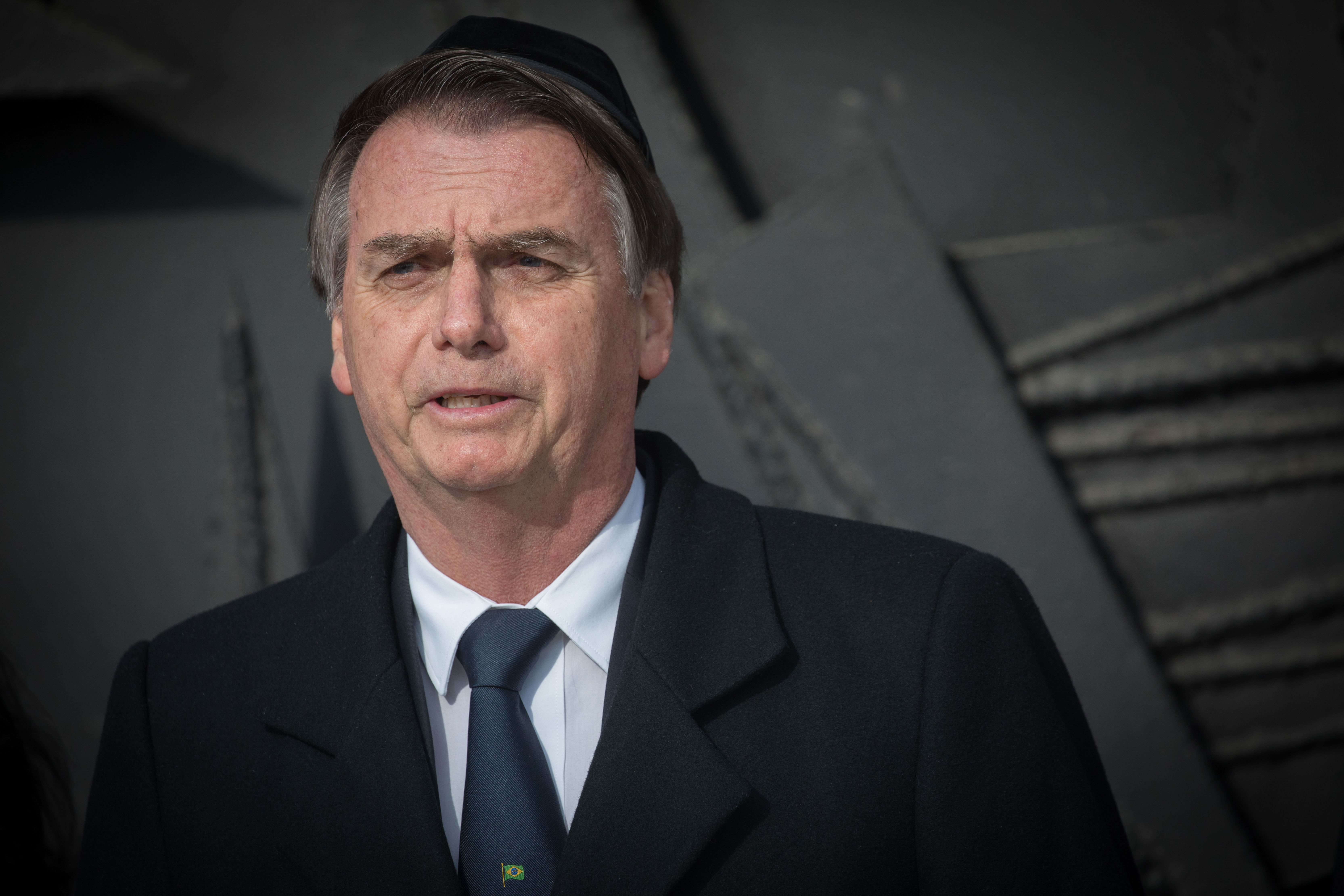 Brazilian President Jair Bolsonaro attends a memorial ceremony at the Hall of Remembrance in Yad Vashem, the World Holocaust Remembrance Center, in Jerusalem, on April 2, 2019. (Xinhua/JINI)