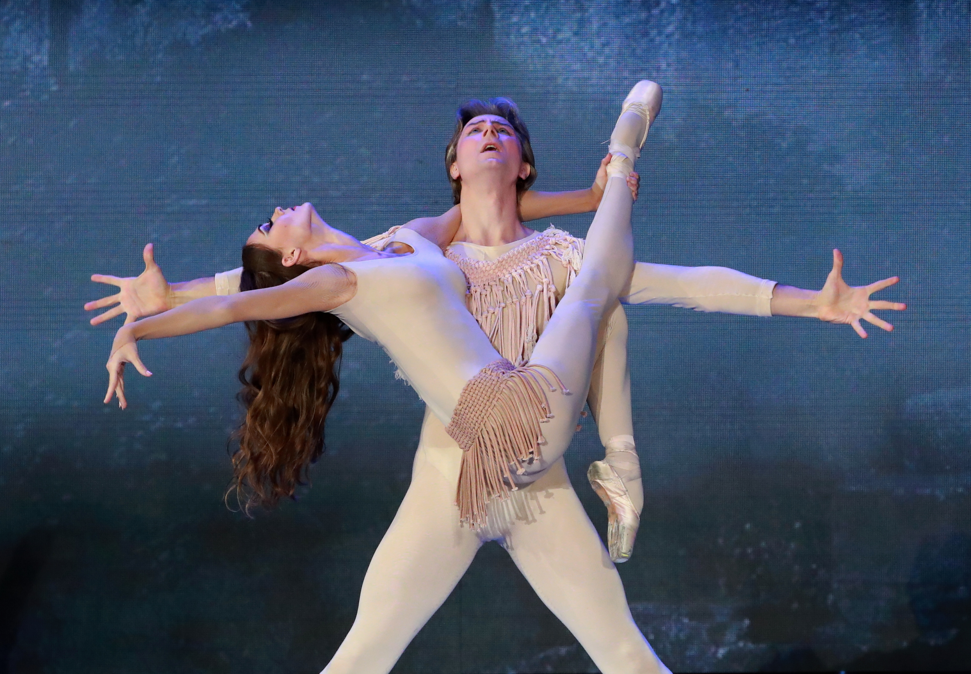 Ballet dancers perform during the 28th Slavonic Bazaar arts festival in Vitebsk, northeast Belarus, July 11, 2019. (Xinhua/Zhinkov Henadz)