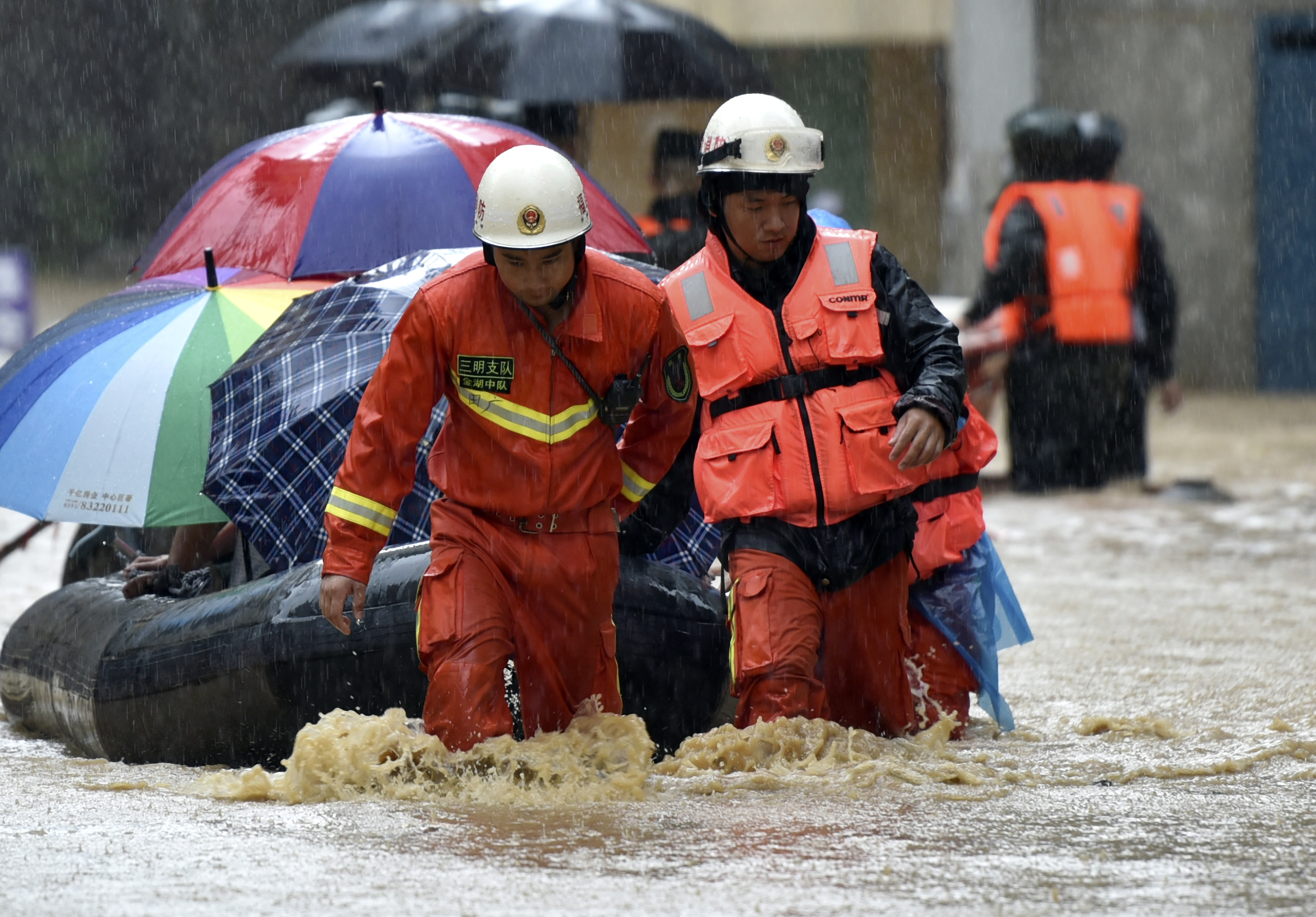 To combat floods, 31 local fire fighting departments have formed professional rescue teams equipped with rescue boats, unmanned aerial vehicles and other equipment.