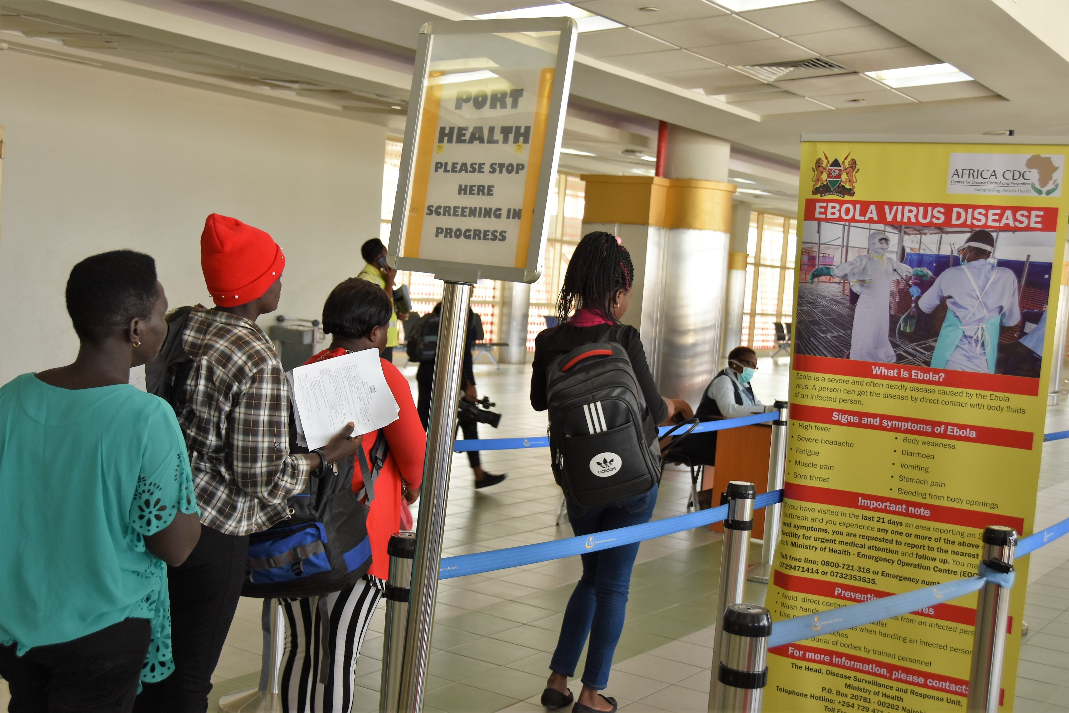 Passengers queue to be screened upon arrival at the Jomo Kenyatta International Airport (JKIA) in Nairobi, capital of Kenya, June 17, 2019. (Xinhua/Allan Mutiso)