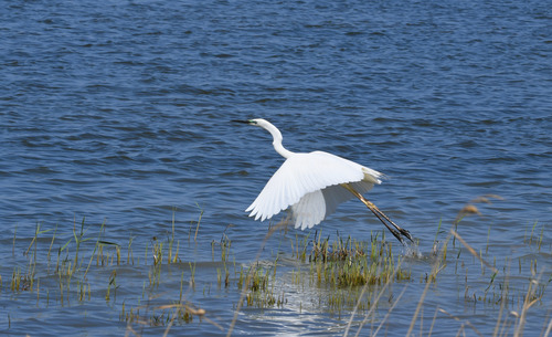 An egret flies above the Ulan Suhai Lake, North China's Inner Mongolia autonomous region. (Photo/Xinhua)