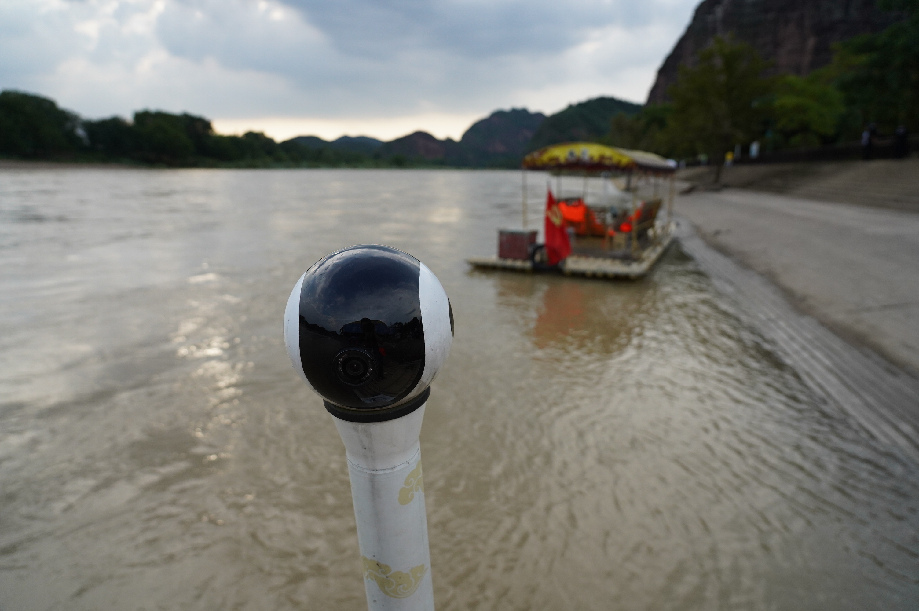 Photo taken on July 17, 2019 shows a 5G camera which allows tourists to share live video with others on a bamboo raft in Yingtan, east China's Jiangxi Province. (Xinhua)