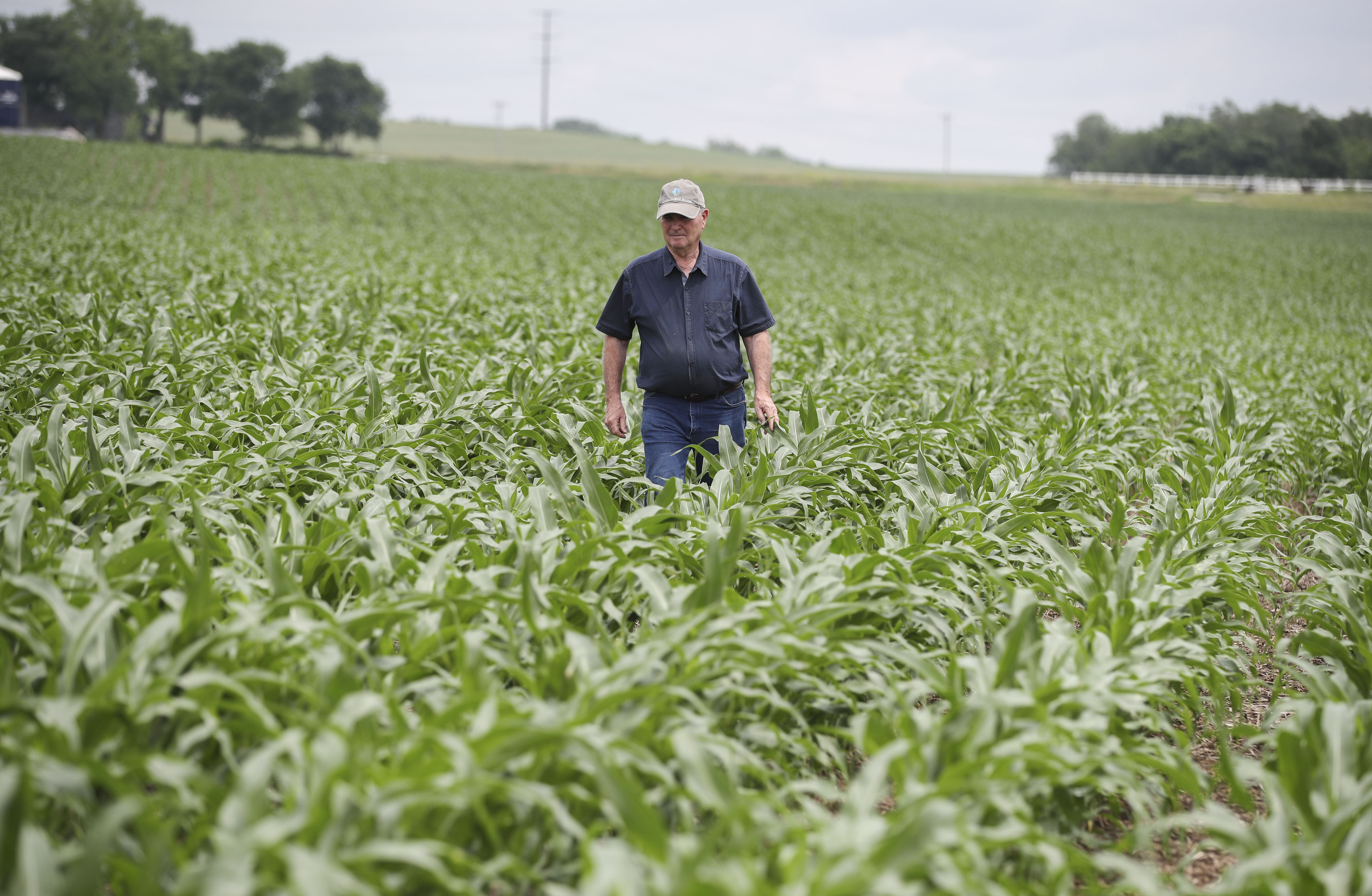 Farm owner Bill Pellett inspects his corn field in his family farm in Atlantic, a small city in the Midwestern state of Iowa, the United States, June 18, 2019. (Xinhua/Wang Ying)