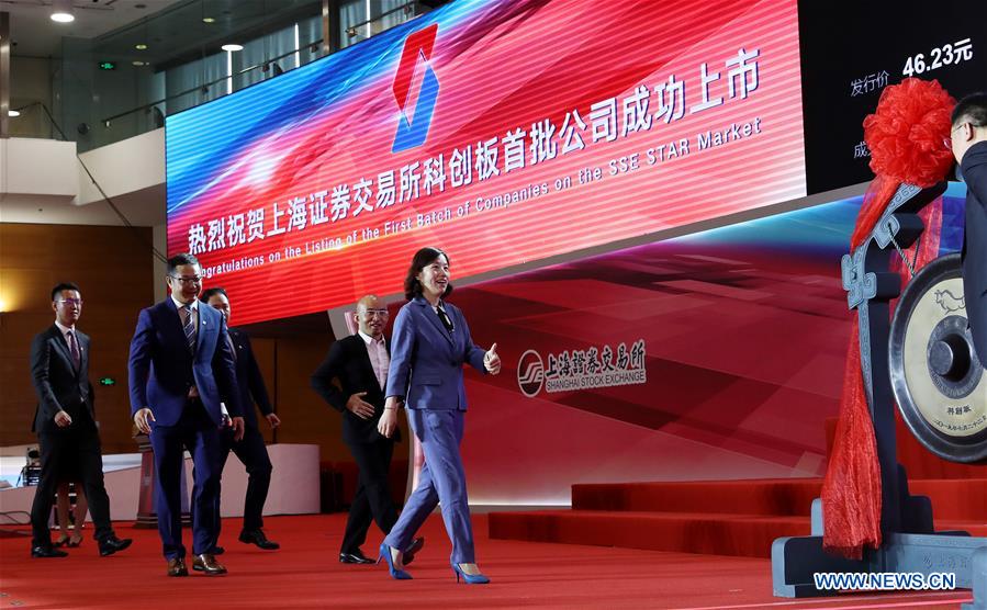 SHANGHAI, July 22 (Xinhua) -- China's sci-tech innovation board (STAR market) started trading on the Shanghai Stock Exchange Monday morning, with the first batch of 25 companies debuting on the board.