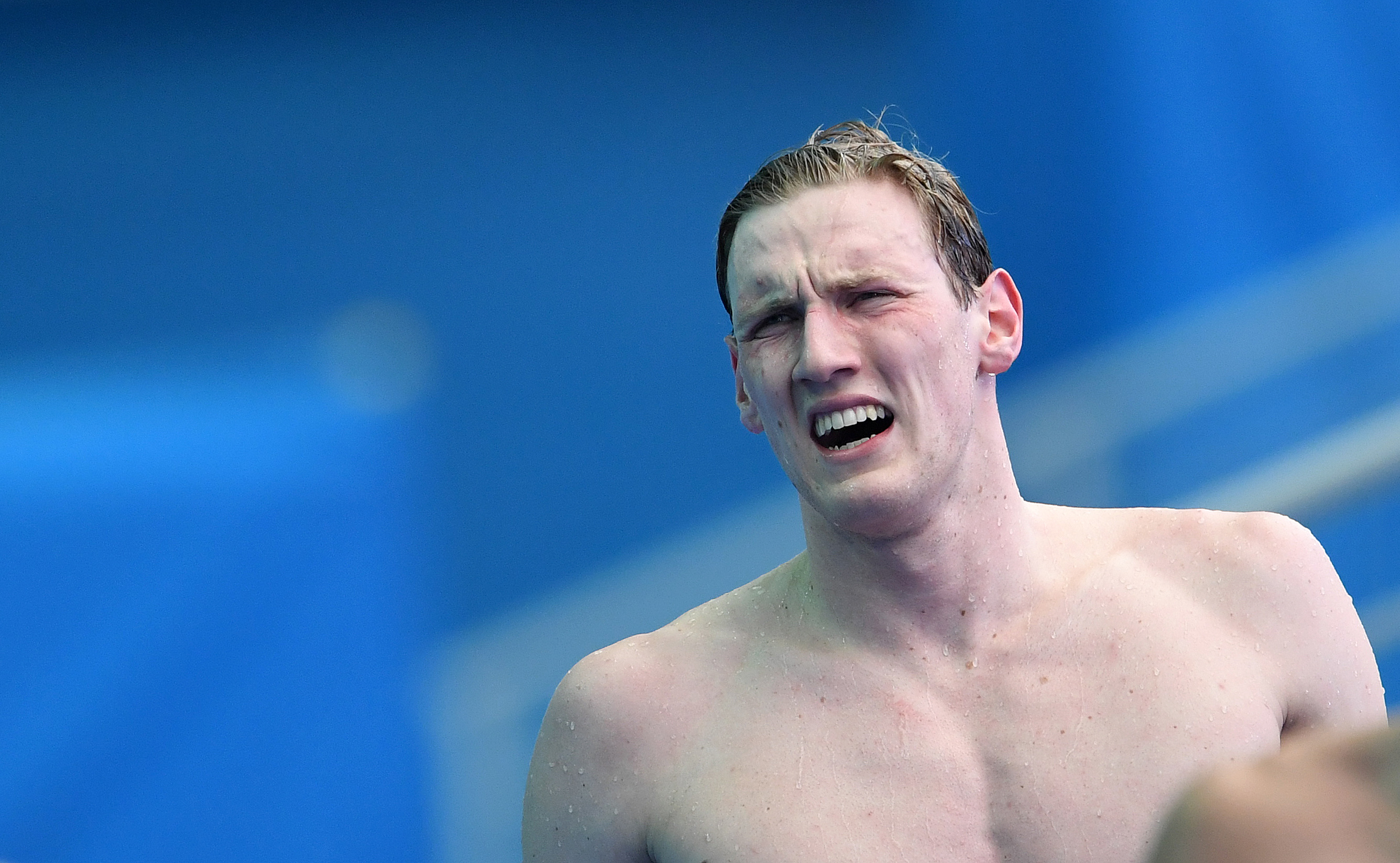 Australia's Mack Horton reacts after a heat for the men's 800m freestyle event during the swimming competition at the 2019 World Championships in Gwangju, South Korea, July 23, 2019. (Xinhua/Tao Xiyi)
