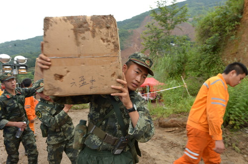 GUIYANG, July 25 (Xinhua) -- China Armed Police were deployed Tuesday to support personnel on the ground after a landslide in a village in Guizhou Province, southwest China.