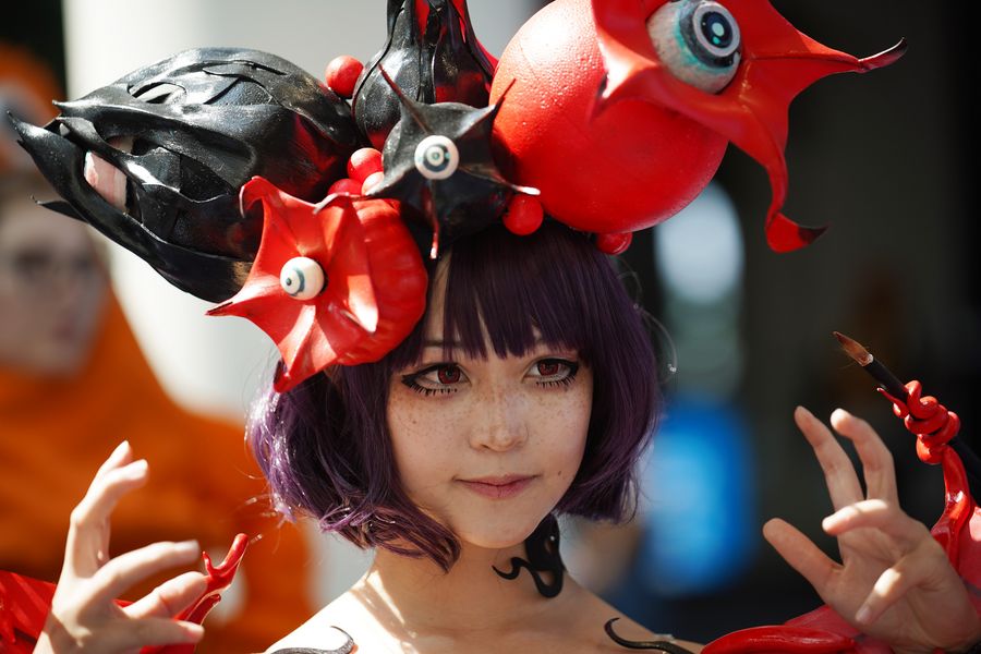 A cosplayer poses for a photo during the Otakon 2019 at the Walter E. Washington Convention Center in Washington D.C., the United States, on July 27, 2019. (Xinhua/Liu Jie)