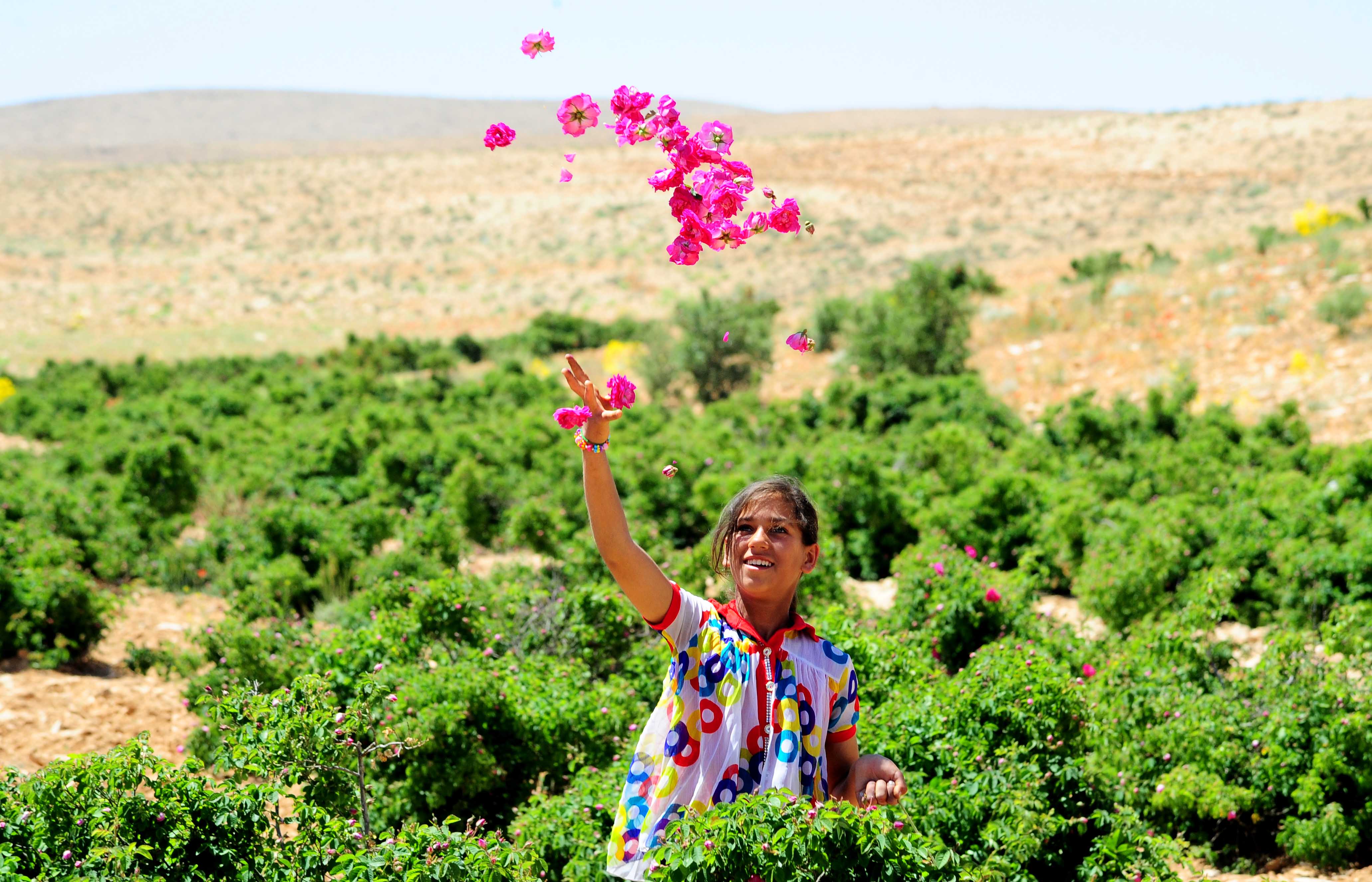 The rose water and essential oil made from Damask roses are her company's primary products. With a heady, rich and smooth scent, the Damask Rose is an important material for cosmetics and perfumes popular in the Arab world and Europe.