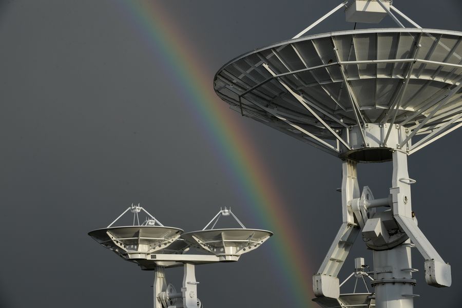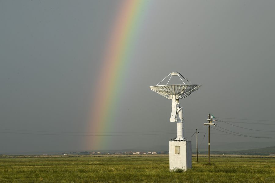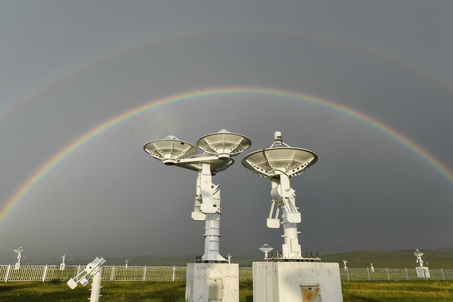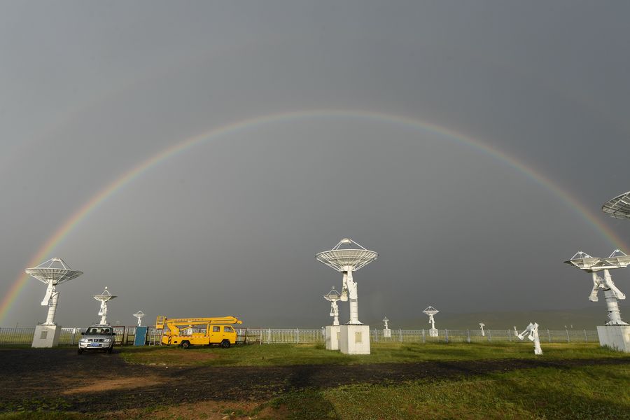 A rainbow emerges over the Ming'antu observing station of the National Astronomical Observatories of the Chinese Academy of Sciences, in Zhengxiangbai Qi, north China's Inner Mongolia Autonomous Region. (Xinhua/Liu Lei)