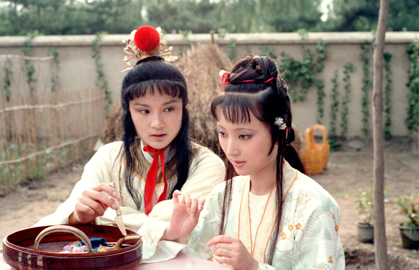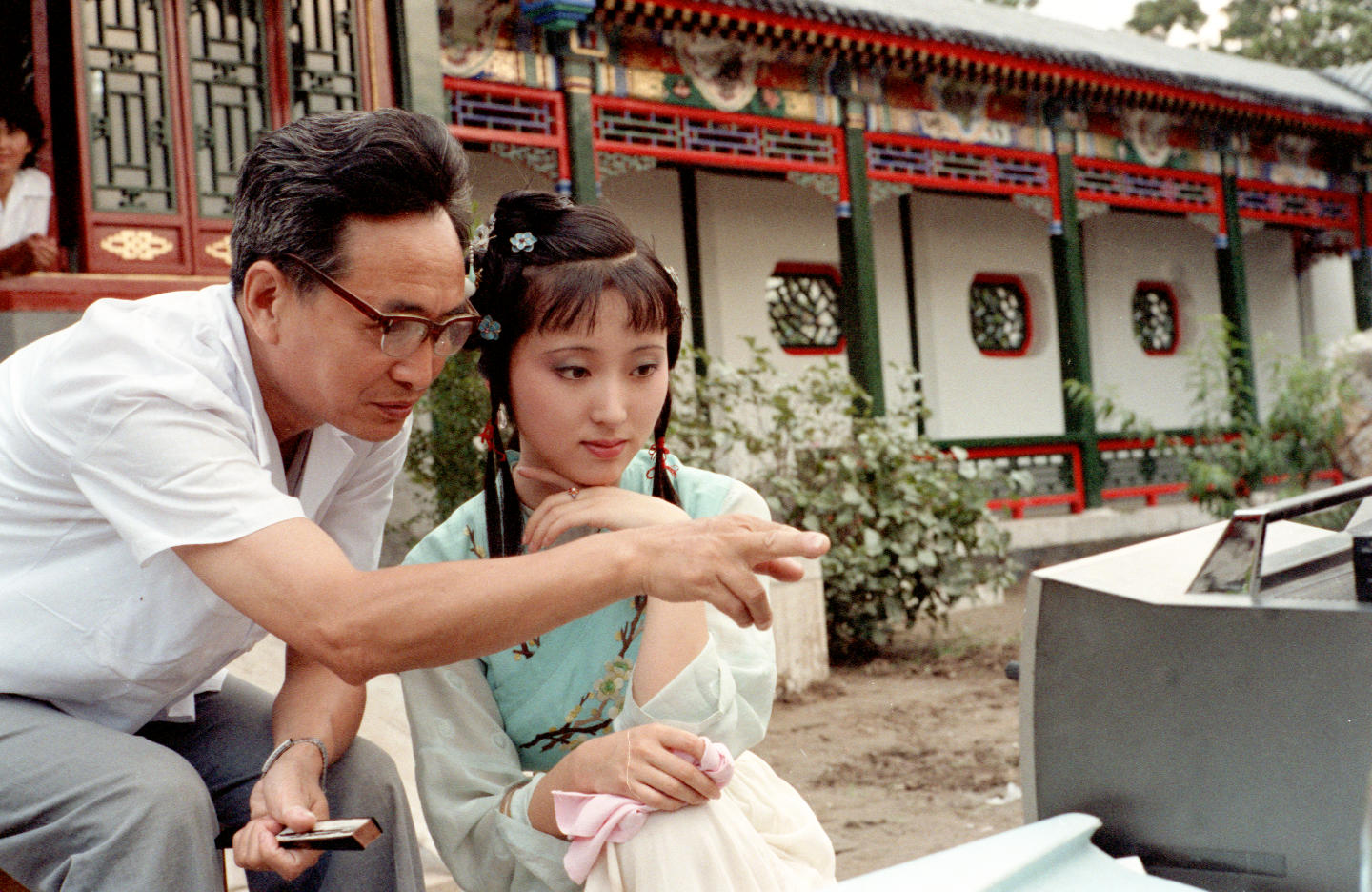 Wang Fulin (left), director of the classic Chinese TV series "A Dream of Red Mansions," instructs Chen Xiaoxu, actor of Lin Daiyu at a shooting scene. (Xinhua/Song Lianfeng)