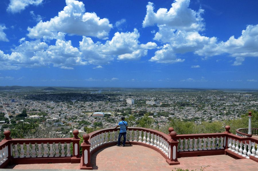 A tourist is observing the urban landscape from the viewpoint of the Loma de la Cruz, in the city of Holguin, about 700 kilometers from Havana, the capital of Cuba. (Xinhua/Joaquin Hernandez)