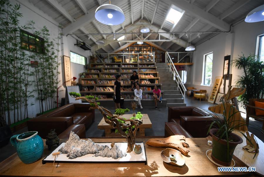 Photo taken on Aug. 7, 2019 shows a resting area of a rural cultural complex in Miaoxi Township of Huzhou City, east China's Zhejiang Province. Based on mountainous ecological environment, the Miaoxi Township tries to promote local ecological tourism by constructing tourist resorts, rural theme hotels, homestays, rural cultural complex, and holding tourism events. The ecological tourism here alone brings a 20 percent increase to the township's revenue every year. (Xinhua/Xu Yu)
