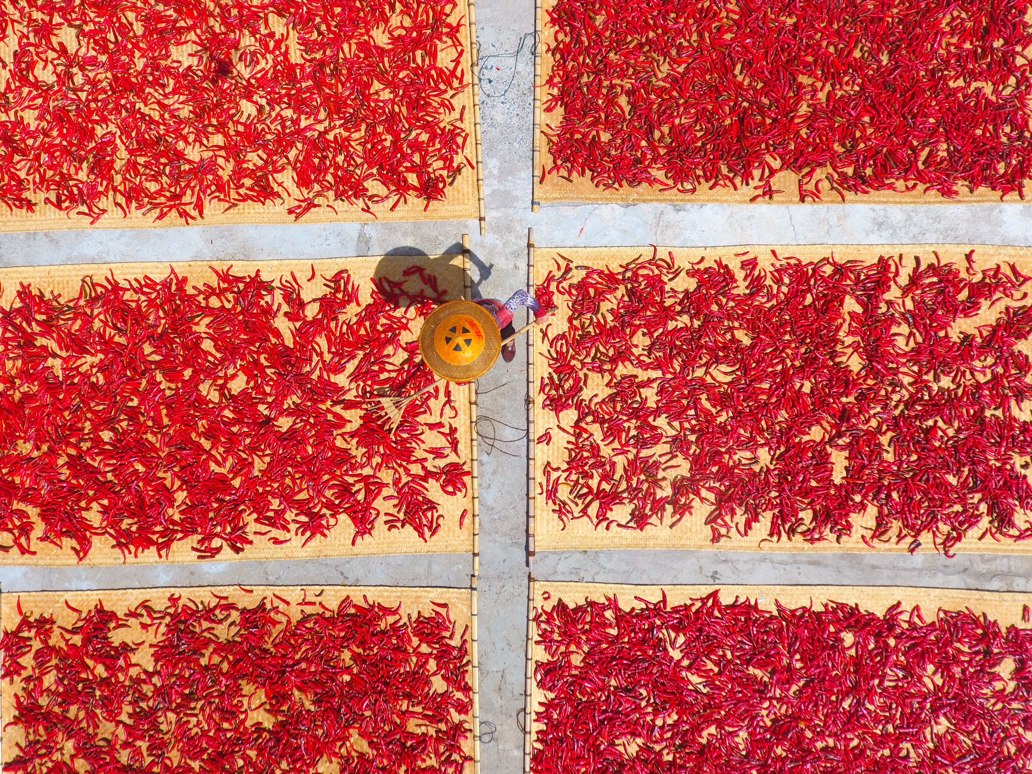 In the serene village of Xiuling, which means "beautiful mountains" in Chinese, swathes of red chilli and peppers envelop the lush green mountains. The plantation is part of the county government's efforts to help lift locals out of poverty, while creating a "distinctive township based on chilli" in answer to a central government plan.