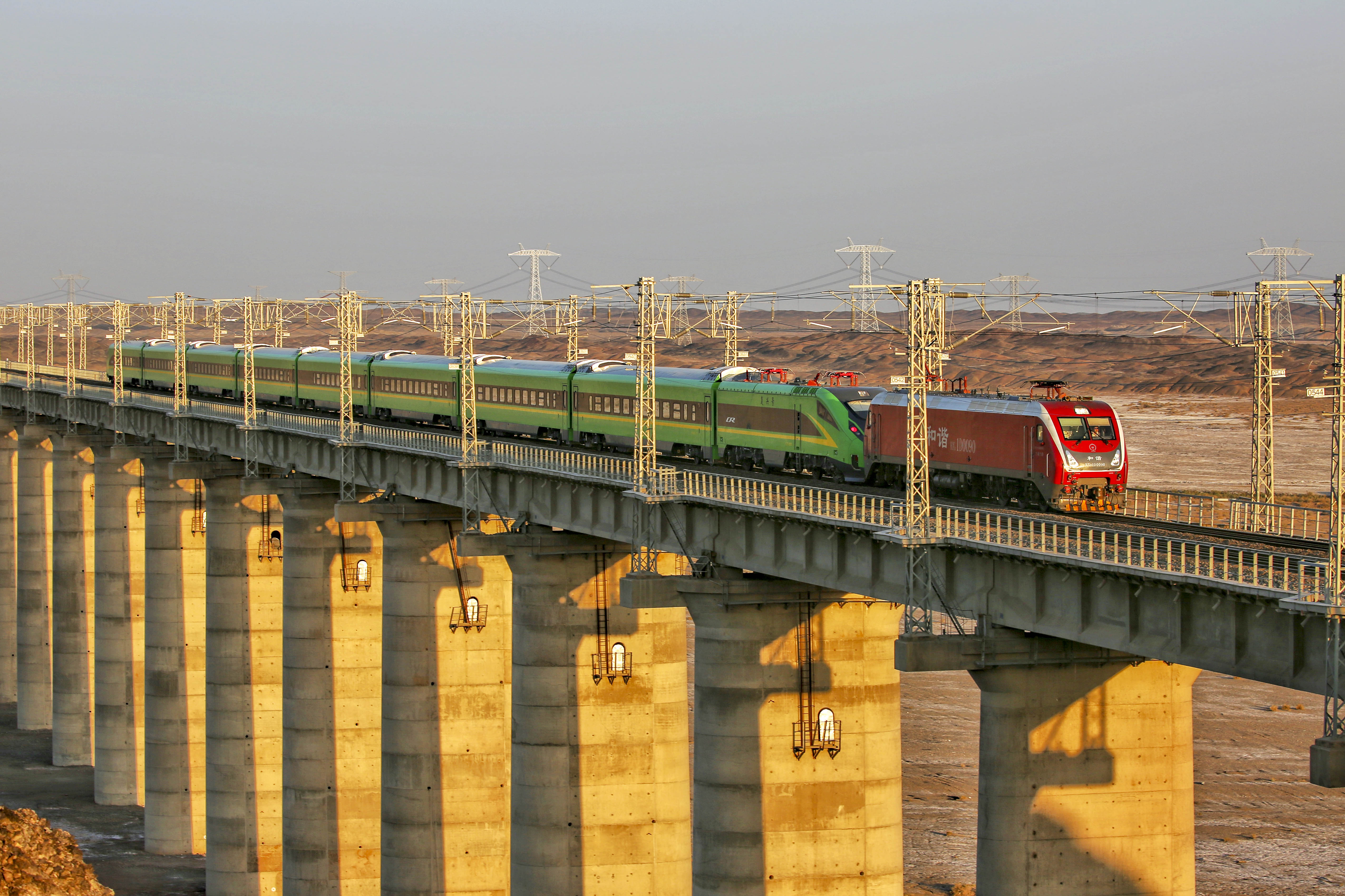 A bullet train runs on a bridge in Urumqi, northwest China's Xinjiang Uygur Autonomous Region. (Xinhua/Zhang Yongheng)