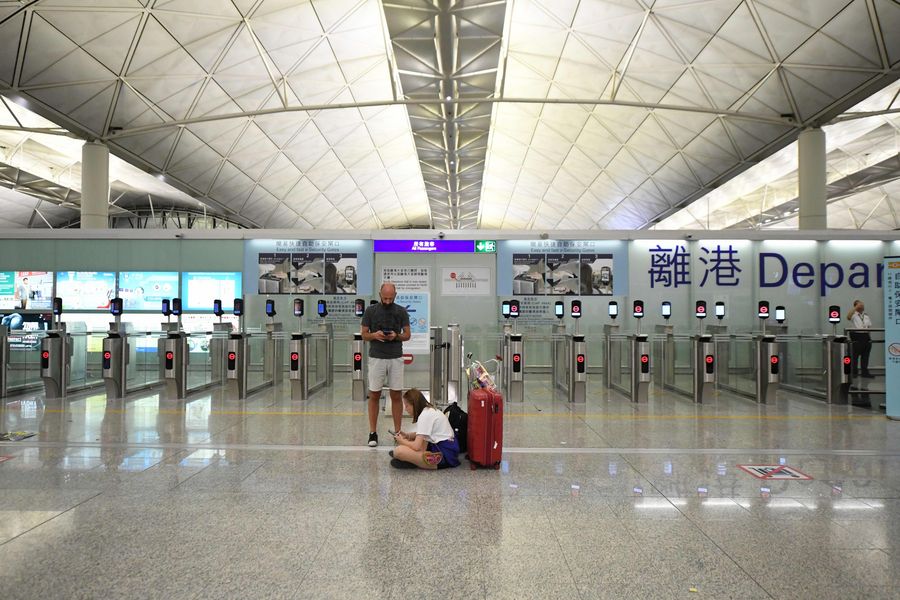 All check-in services were suspended, said the Airport Authority Hong Kong in a statement on Monday afternoon, adding that departing flights that had completed check-in procedures and arriving flights already heading to Hong Kong were excluded from the suspension.
