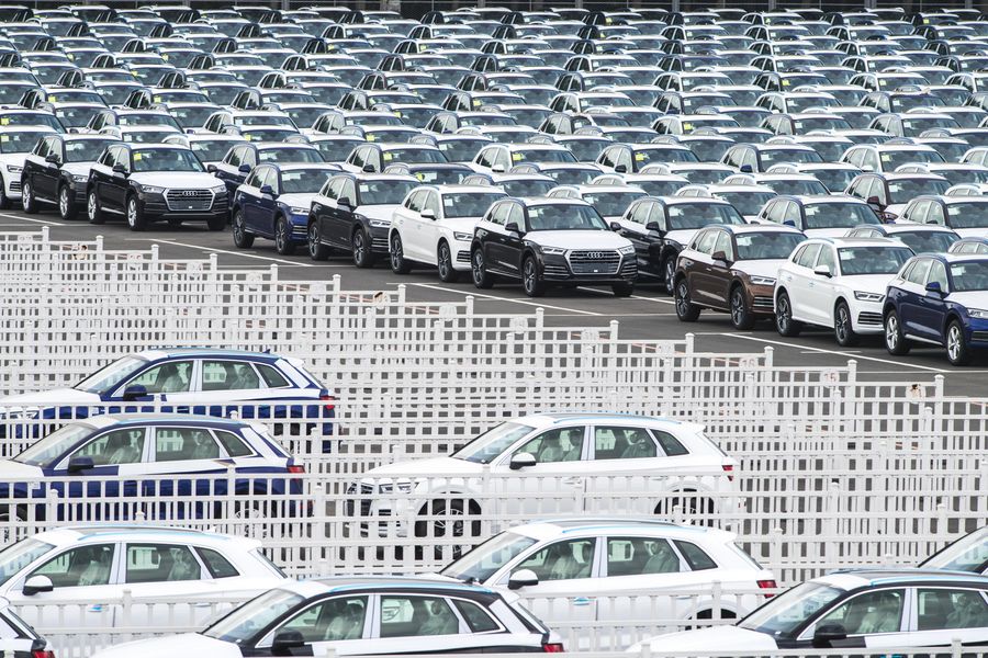 Audi vehicles awaiting transfer at the parking lot of FAW-Volkswagen in Changchun, capital of northeast China's Jilin Province, July 9, 2019. (Xinhua/Xu Chang)
