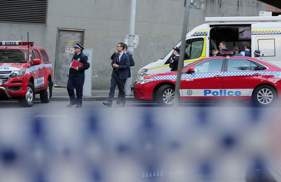 Police officers at the site of the knife attack in Sydney, Australia, Aug. 13, 2019. (Xinhua/Bai Xuefei)