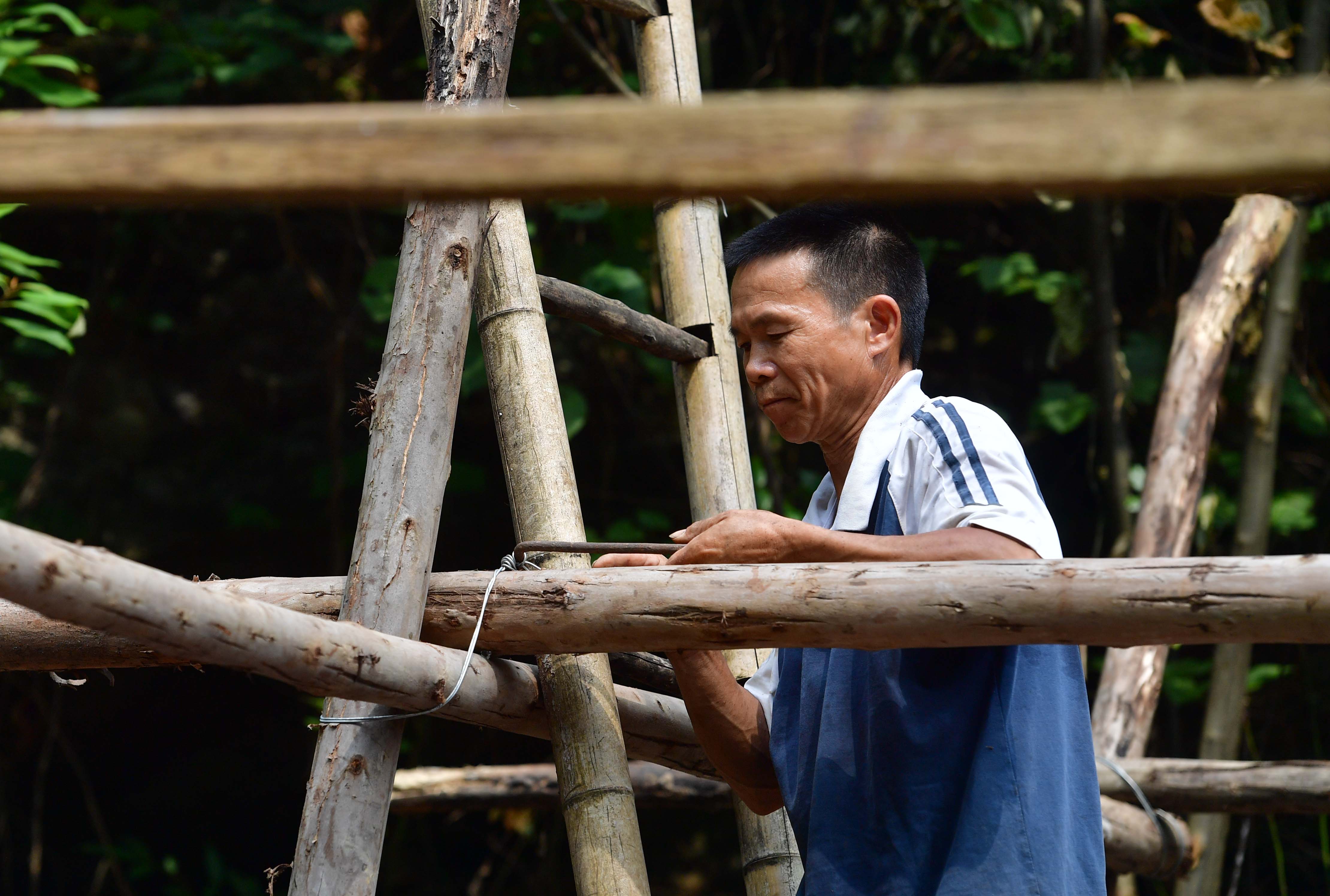 Long Gexiong builds a pheasantry at Tongbantun Village of Dongqi Township in Rongan County, south China's Guangxi Zhuang Autonomous Region. (Xinhua/Huang Xiaobang)