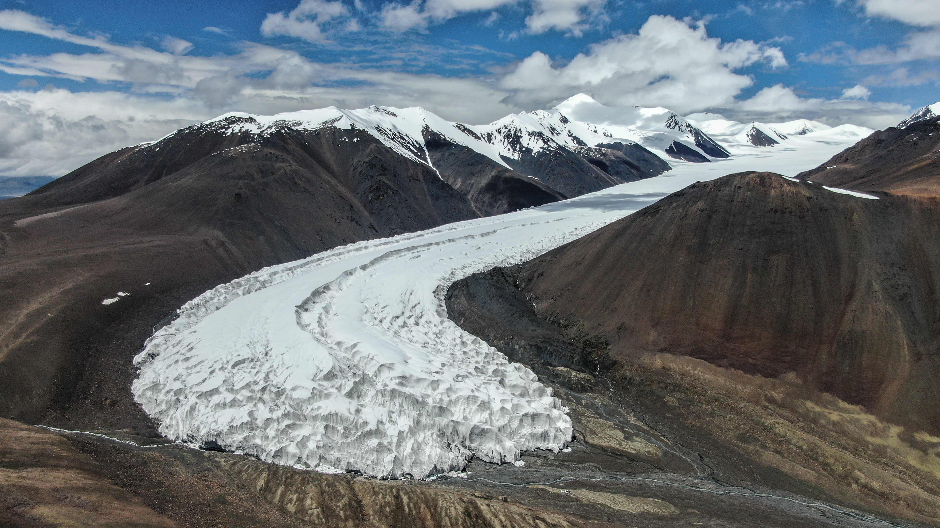 Photo taken on Aug. 4, 2019 shows the scenery of a part of a glacier in Rutog County of Ngari Prefecture, southwest China's Tibet Autonomous Region. (Xinhua/Jigme Dorje)