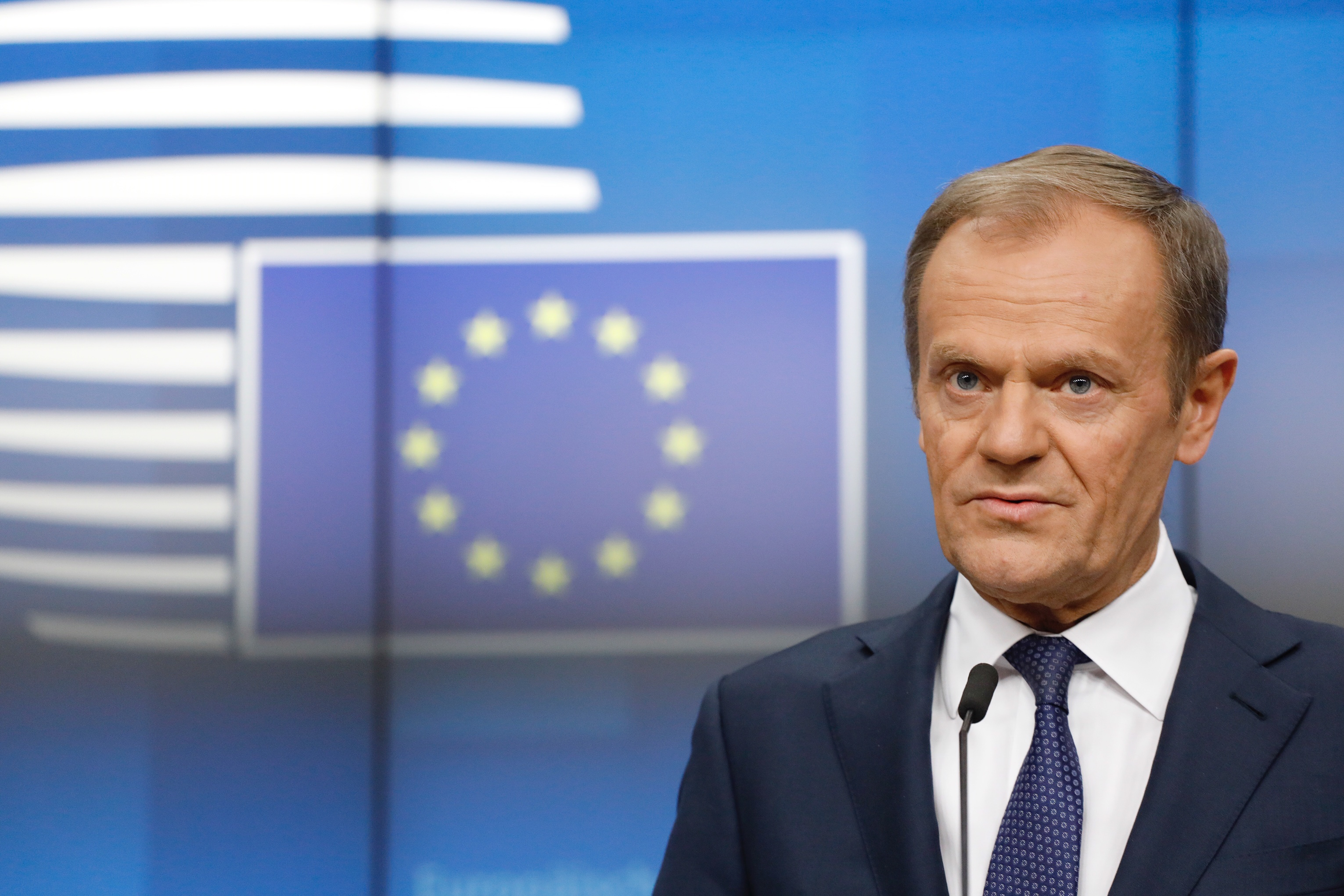 European Council President Donald Tusk attends a press conference after EU's spring summit in Brussels, Belgium, on March 22, 2019. (Xinhua/European Union)