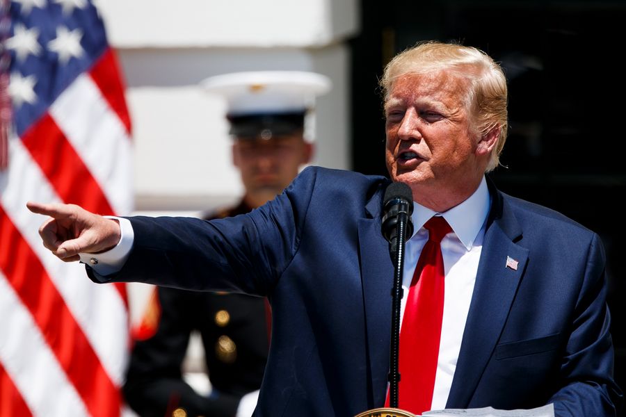 U.S. President Donald Trump speaks during the 3rd annual Made in America product showcase at the White House in Washington D.C., the United States, July 15, 2019. (Xinhua/Ting Shen)