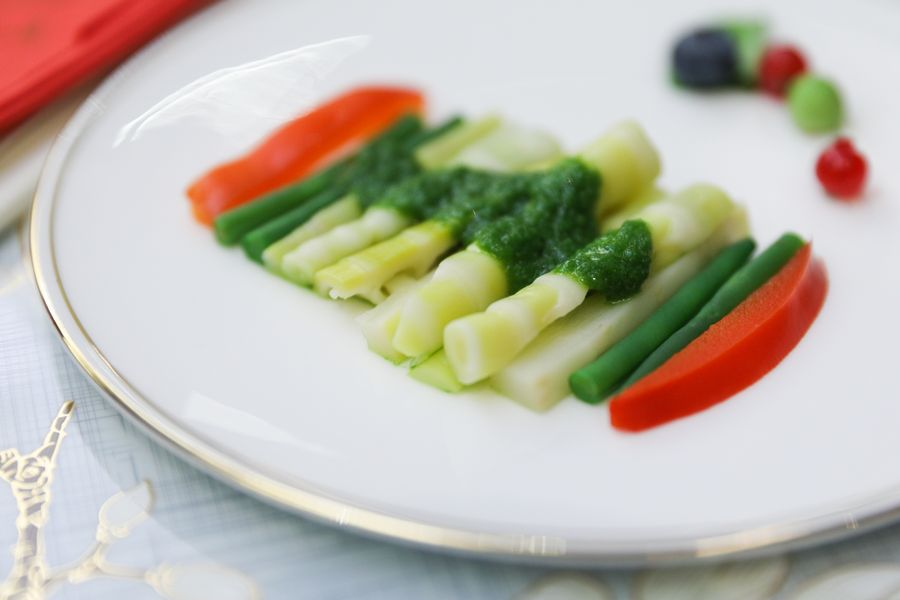 A dish of bamboo shoots salad is seen during 2018 Europe-Chengdu Food Culture Festival in Brussels, Belgium, on Oct. 24, 2018. (Xinhua/Zheng Huansong)