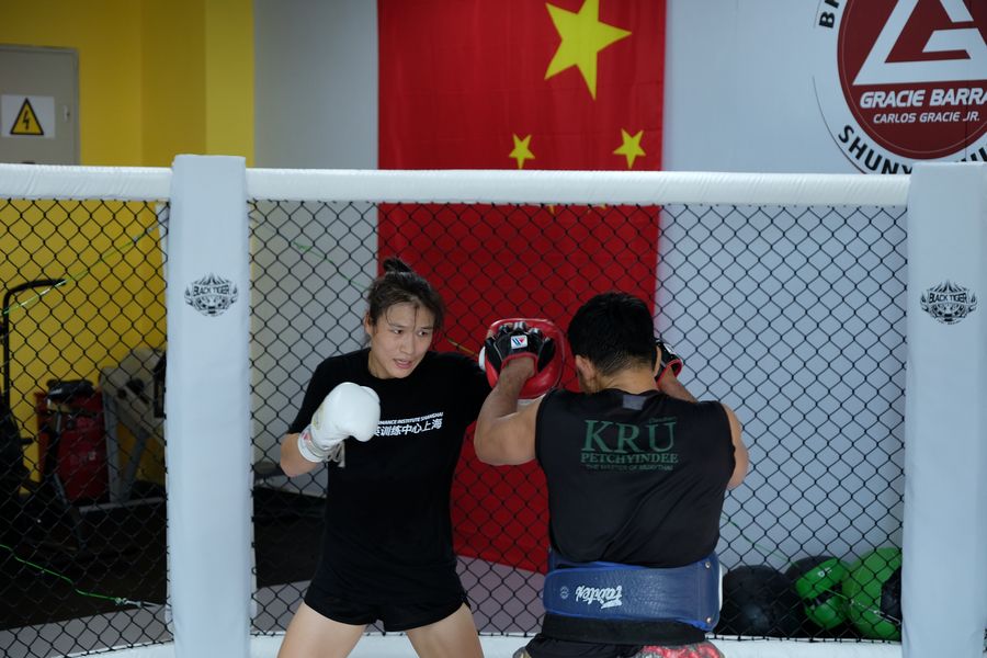 Zhang Weili, the number one contender for the Ultimate Fighting Championship (UFC) World Strawweight title, is hard at work. Standing at only 162 centimeters, the diminutive figure of China's mixed martial arts (MMA) star stands with her own powerful aura that draws everyone's attention.