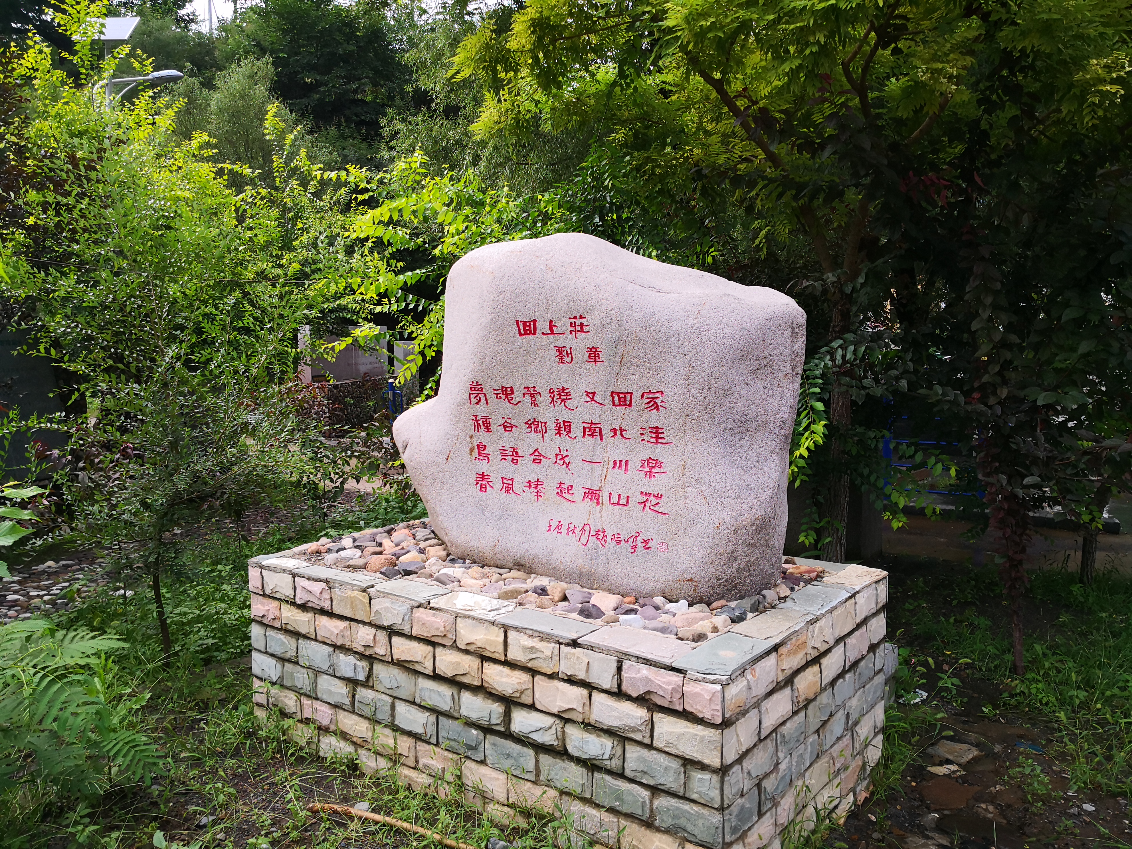 A poem by a famous local poet is incribed on a stone in Shishangzhuang Village of Chengde City, Hebei Province. (Xinhua/Cao Guochang)