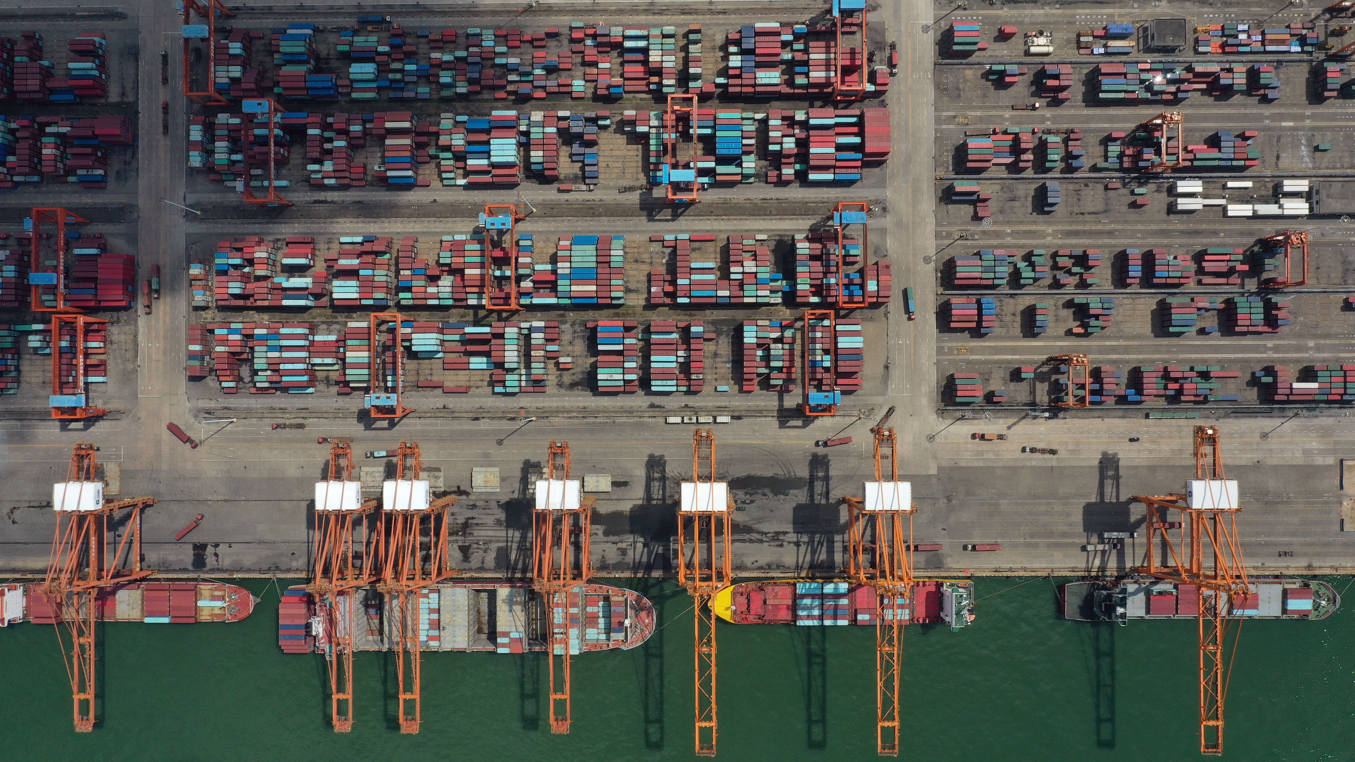 The aerial photo taken on Aug. 28, 2019 shows the container wharf of the Qinzhou port in south China's Guangxi pilot free trade zone. (Xinhua/Zhang Ailin)