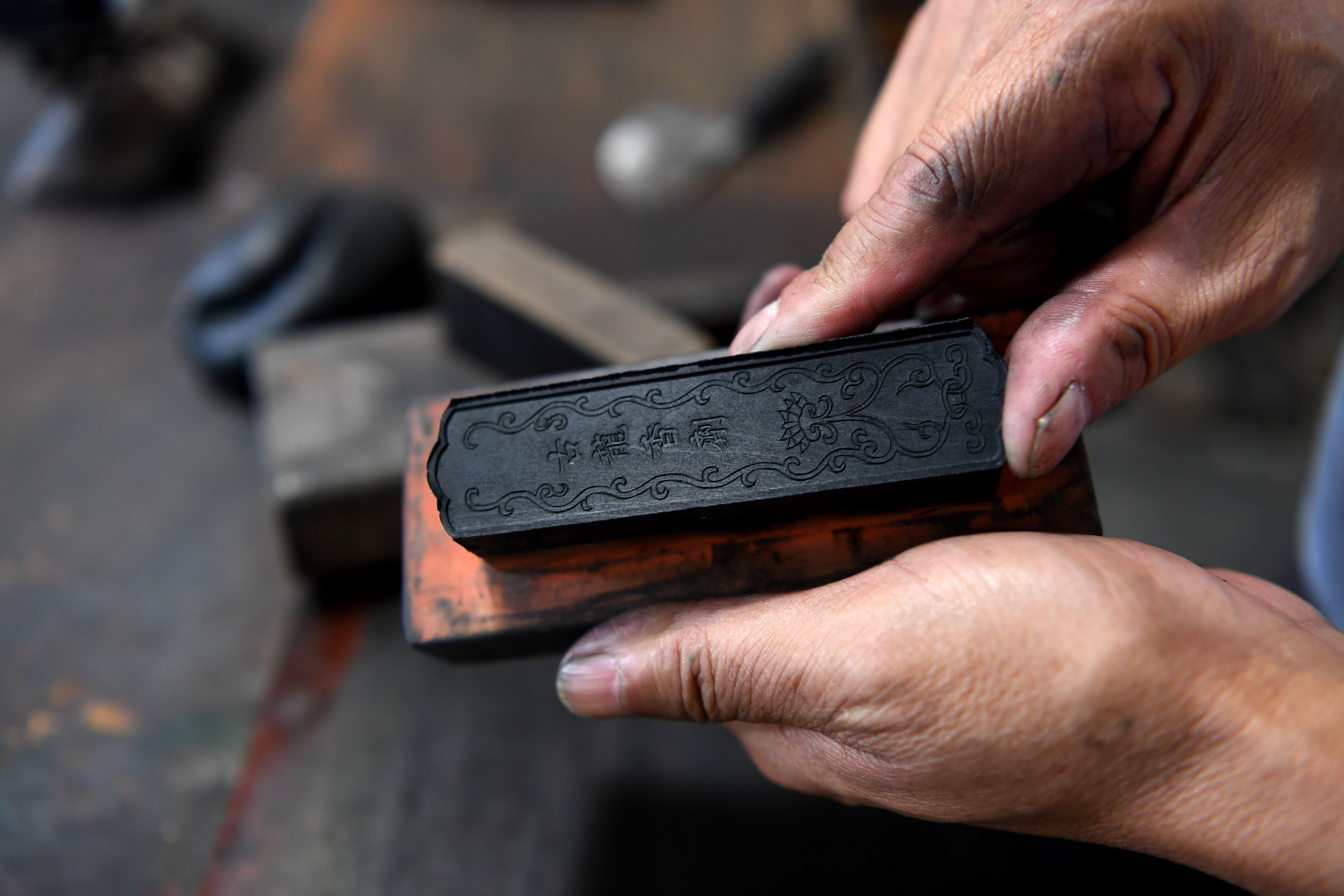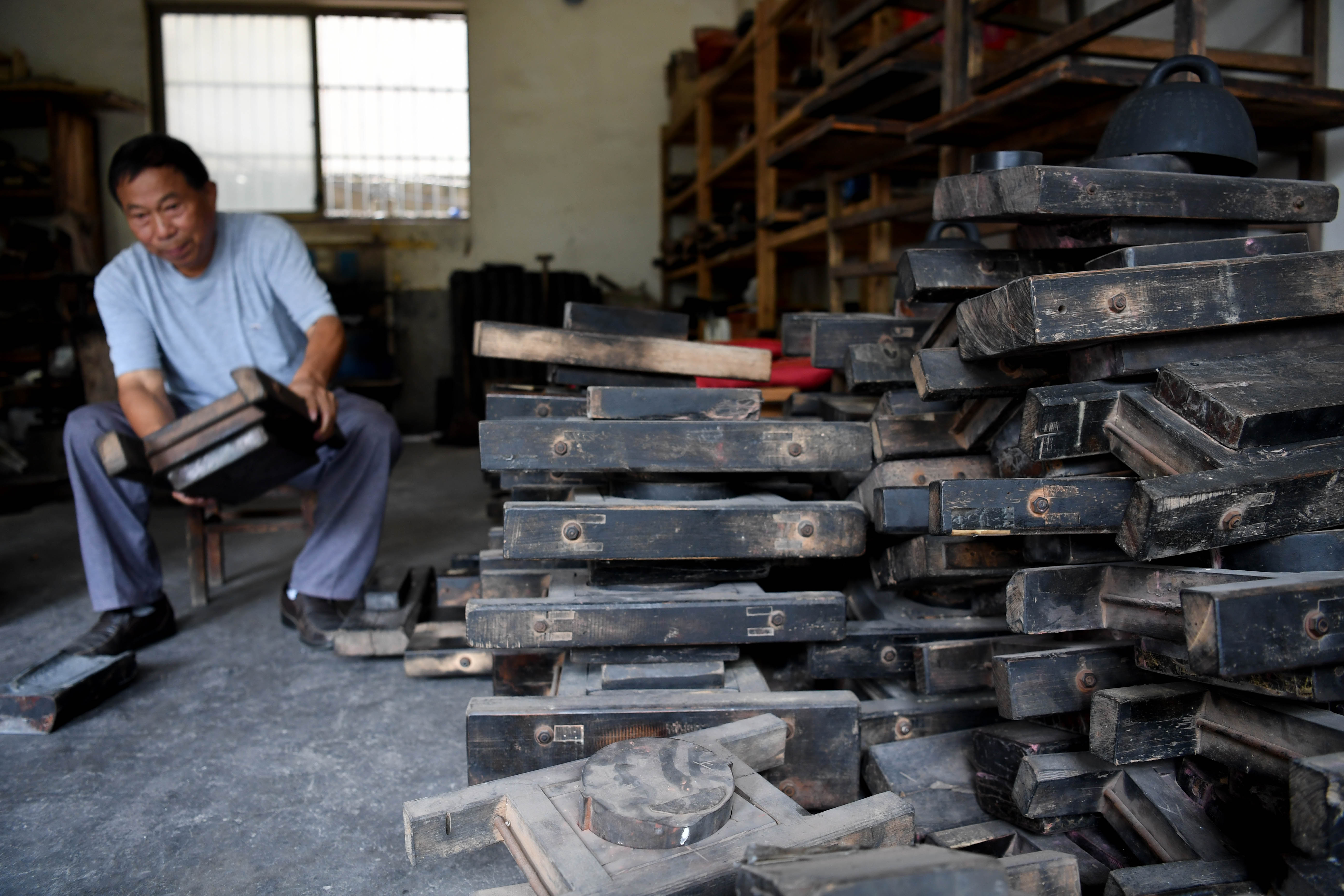 Wu Chenglin takes out an inkstick from an ink mould in the Huizhou District of Huangshan, east China's Anhui Province, Aug. 29, 2019. (Xinhua/Liu Junxi)