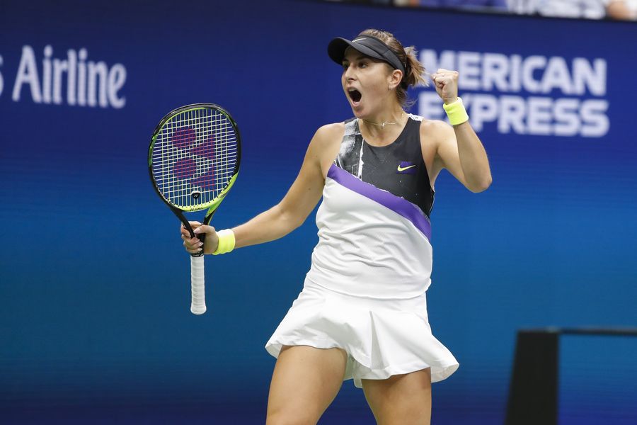 Belinda Bencic of Switzerland celebrates during the women's singles fourth round match against Naomi Osaka of Japan at the 2019 US Open in New York, the United States, on Sept. 2, 2019. (Xinhua/Li Muzi)