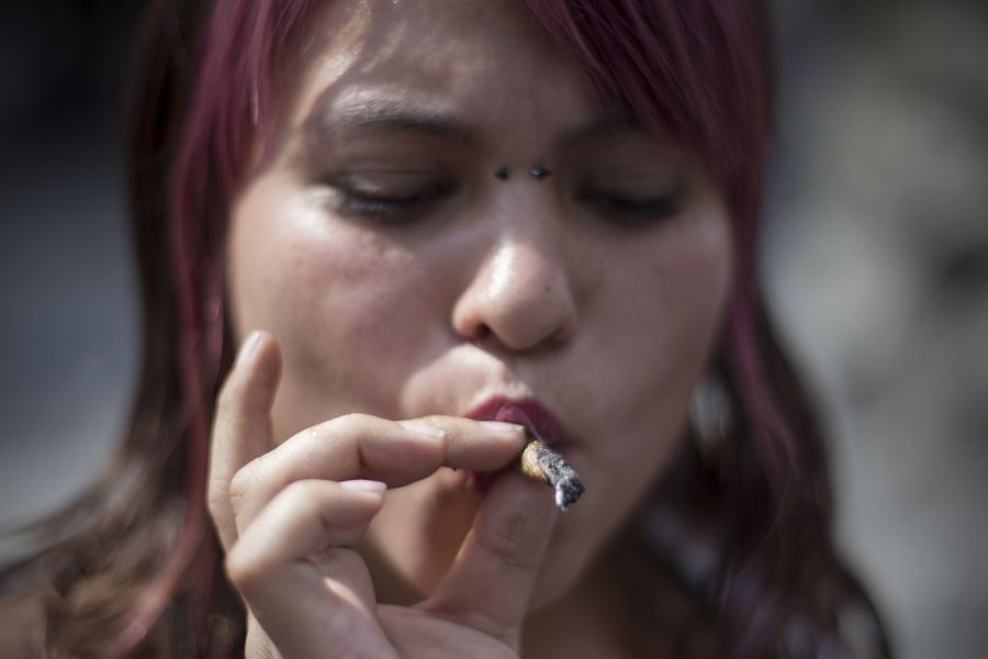 A woman smokes marijuana during a demonstration in front of the National Supreme Court of Justice in Mexico City, capital of Mexico, on Nov. 4, 2015. (Xinhua/Alejandro Ayala)