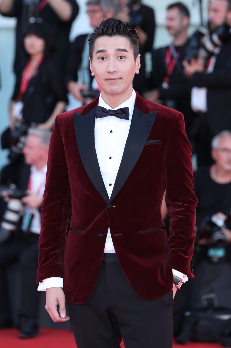Chinese actor Mark Chao poses on the red carpet for the premiere of the film "Saturday Fiction" during the 76th Venice International Film Festival. (Xinhua/Cheng Tingting)