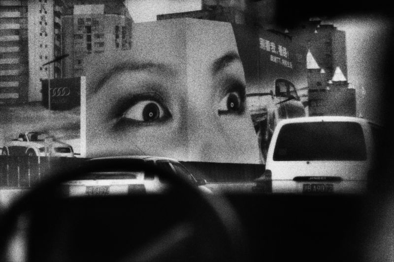 A giant advertisement poster in a Chinese city in 2002 (Photo by Marc Riboud)