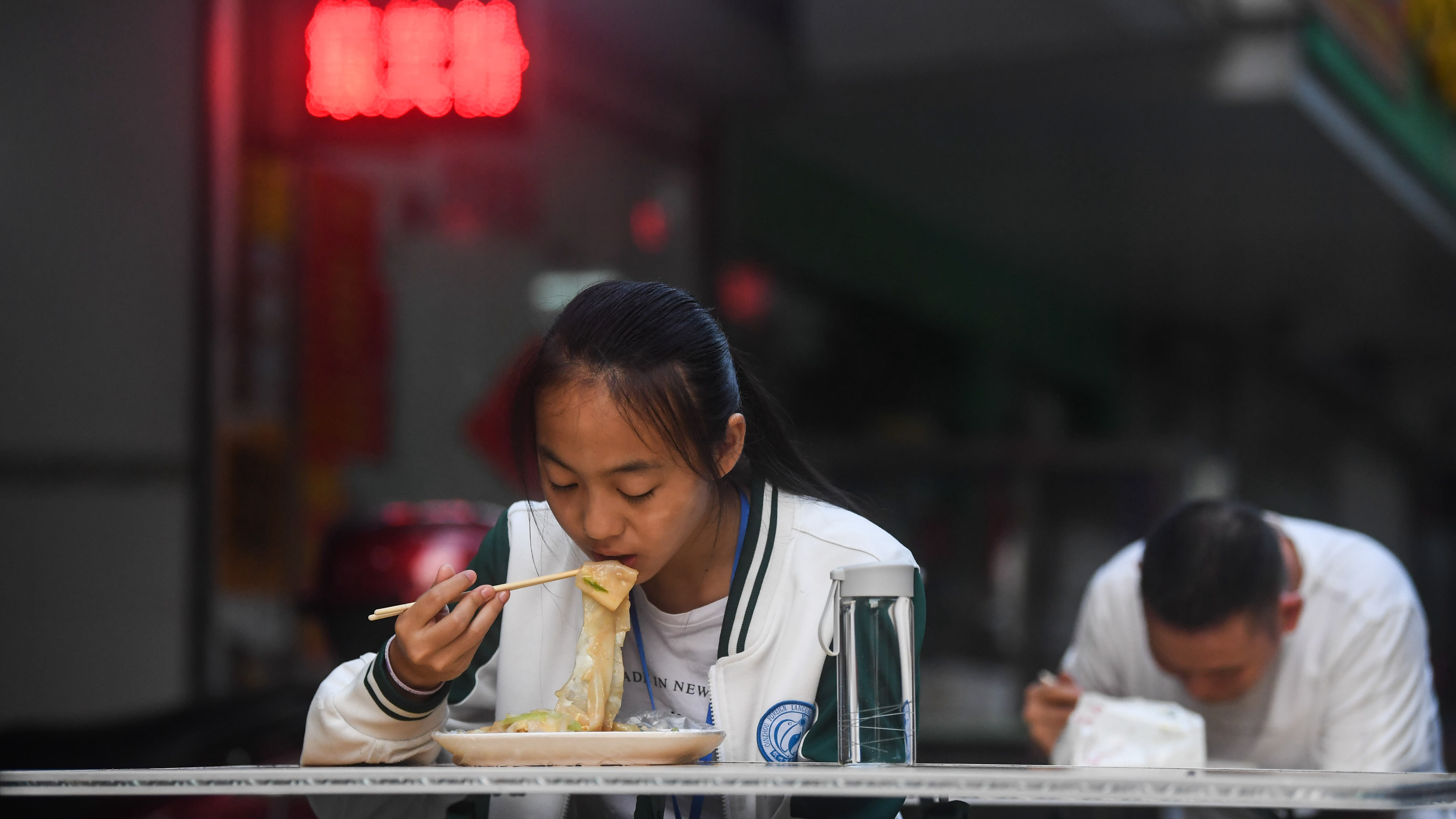 People eat "Bojifen", a kind of rice roll, at a snack bar in Qinzhou, south China's Guangxi Zhuang Autonomous Region, Sept. 6, 2019.(Xinhua/Zhang Ailin)